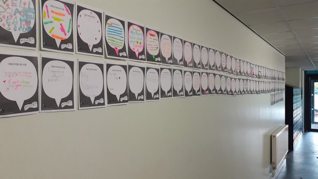 Inspirational messages to loved ones are all over the academy today. #TeamDVA are smashing their Race for Life. So proud!
