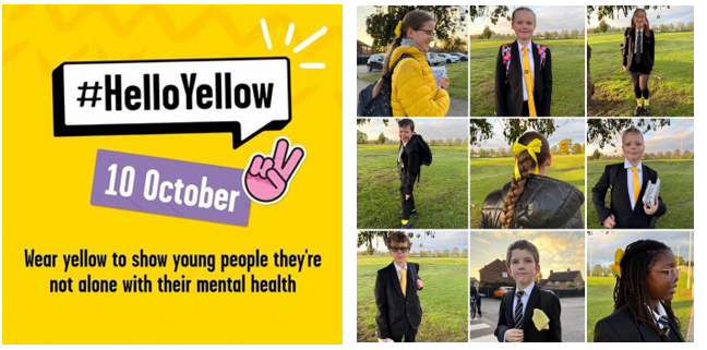 for mental health by wearing a yellow accessory in support of Young Minds and World Mental Health Day. This allowed our students and staff to show support and show young people they are not alone with their mental health! Lots of our students supported this by adding a touch of yellow to their day showing our sense of community as part of #TeamDVA.