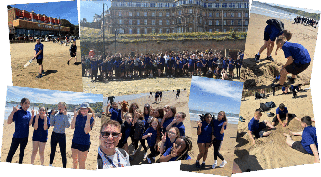 Another fantastic experience at the end of the year for our Y7 cohort. We took 167 students to Scarborough for a day at the seaside and even treated them all to an ice cream from the famous Harbour Bar Ice Cream Shop! Lots of fun was had by all staff and students with time to enjoy a game of cricket and rounders on the beach, free time to enjoy the souvenir shops and grab some fish and chips by the sea and a nice walk to get some fresh sea air! Already looking forward to next year …