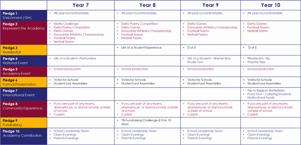 Students are given plentiful opportunities throughout their journey at Don Valley Academy, as part of our Life of a Student programme, to achieve these and gain their 3, 5, 7 and 10 pledge badges, in recognition of their achievements and contributions.