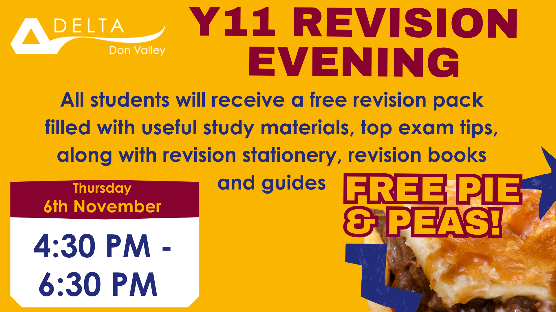 We would like to invite you to the Year 11 Revision Evening, Thursday 6th November 4.30PM to 6.30PM y11 revision evening